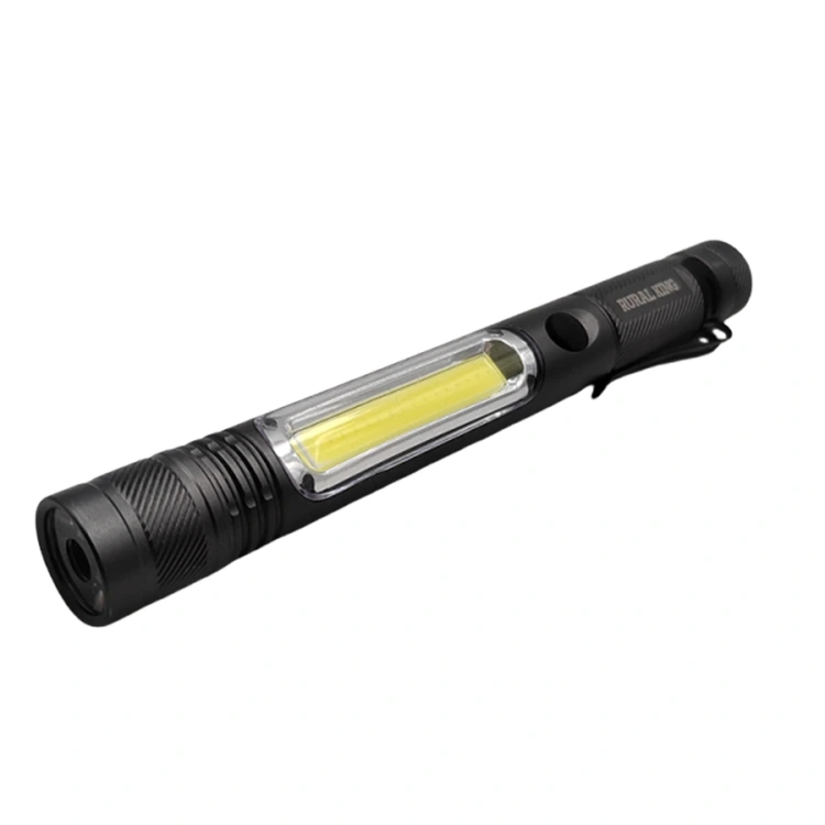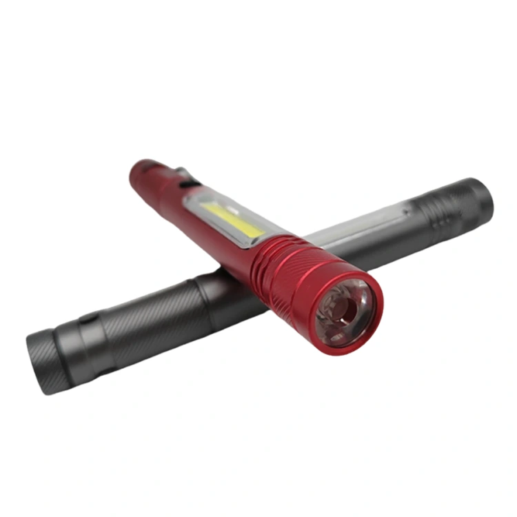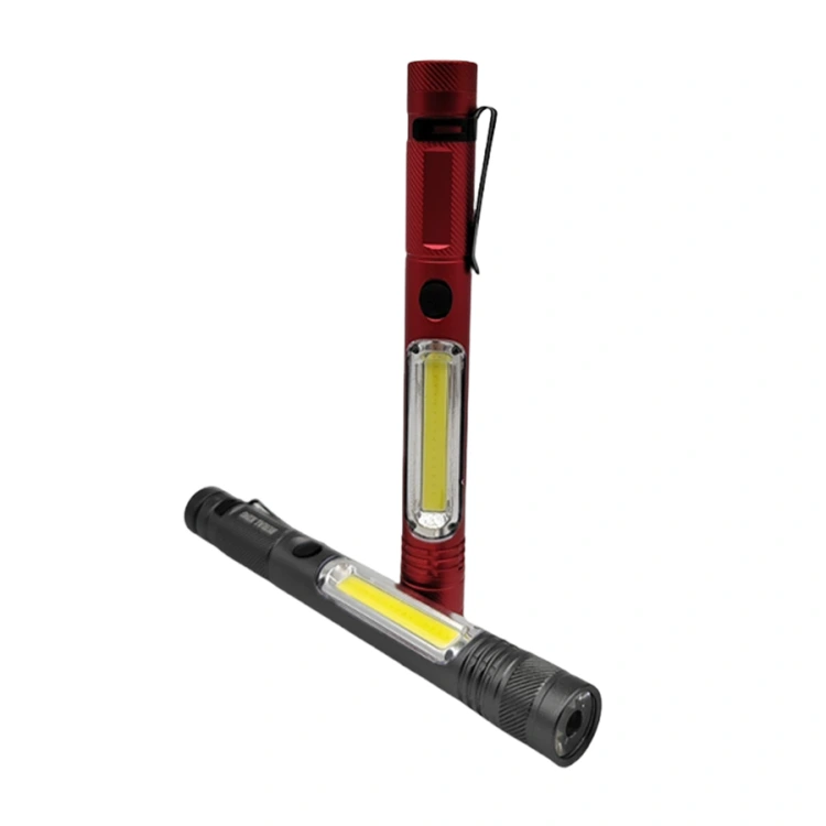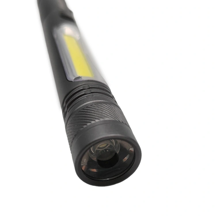 1) เปลือกของไฟฉาย LED แบบคลิปพกพา COB ทำจากวัสดุโลหะผสมอลูมิเนียมที่เป็นของแข็งให้ความรู้สึกพื้นผิวและทนทาน ไม่กลัวการกระแทกในการใช้งานทุกวันและมีอายุการใช้งานยาวนานเป็นพิเศษ